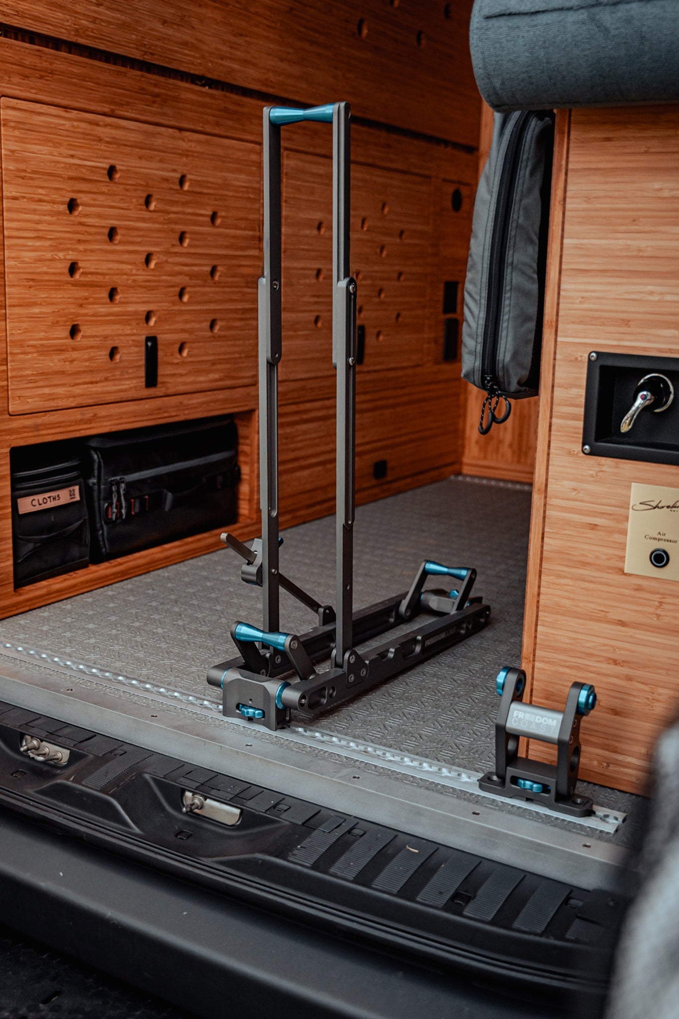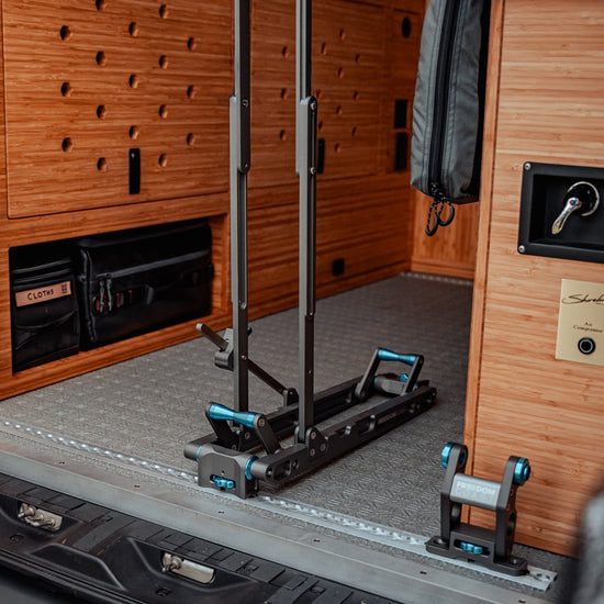 The HOVR Rack (Gen 2) is the next evolution in modular bike storage for adventure vans, overland vehicles, trailers, and mobile gear setups. After more than a year of real-world testing and refinement, Gen 2 delivers a rack that is 30% stiffer, easier to mount, and more versatile than ever.